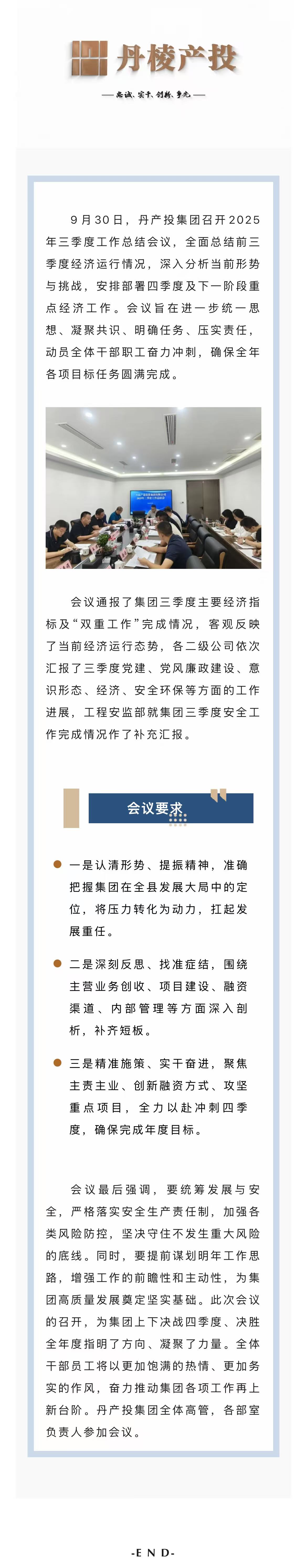 锚定目标 精准施策 全力冲刺全年任务丨丹产投集团召开2025年三季度工作总结会议