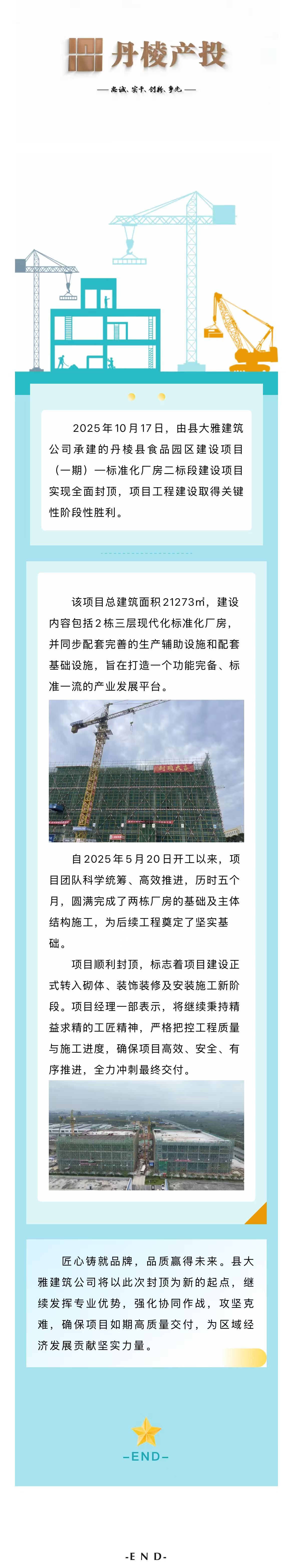 【县大雅建筑公司】丹棱县食品园区建设项目(一期)—标准化厂房二标段建设项目顺利封顶