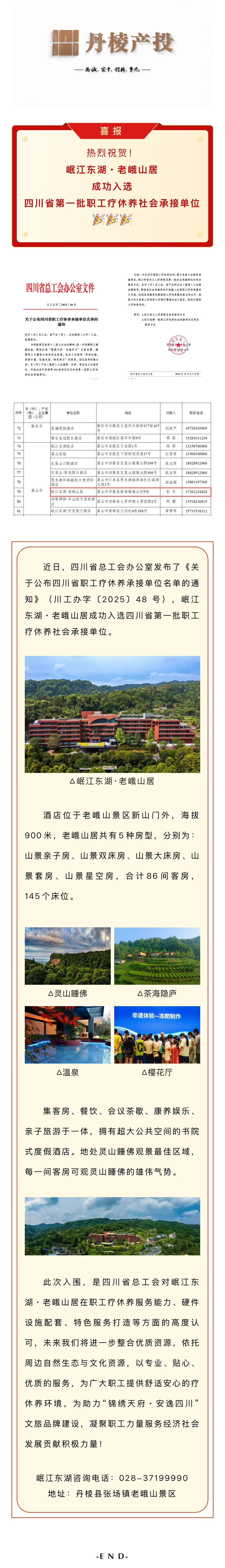【县文旅公司】喜报!岷江东湖・老峨山居入选四川省第一批职工疗休养社会承接单位名单!