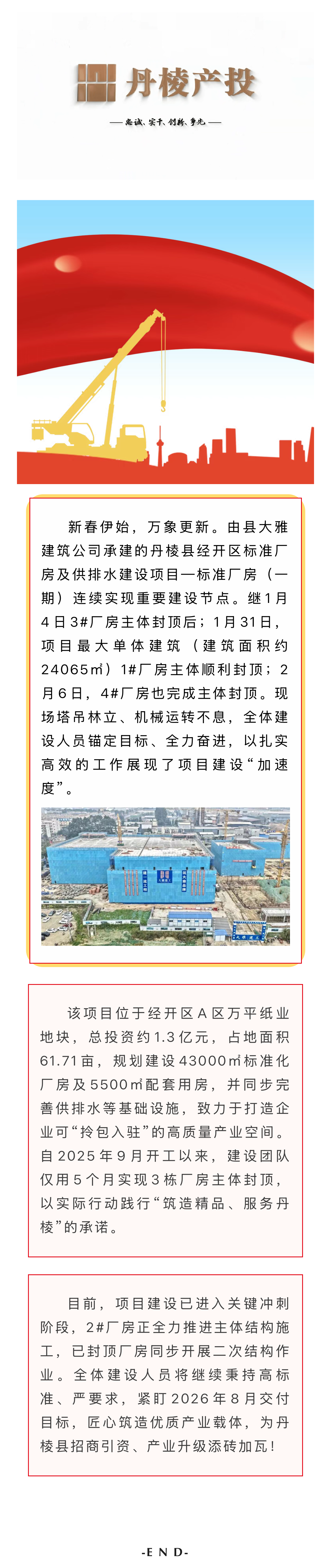 【县大雅建筑公司】筑迹:丹棱县经开区标准厂房及供排水建设项目—标准厂房(一期)捷报频传,多栋厂房相继封顶
