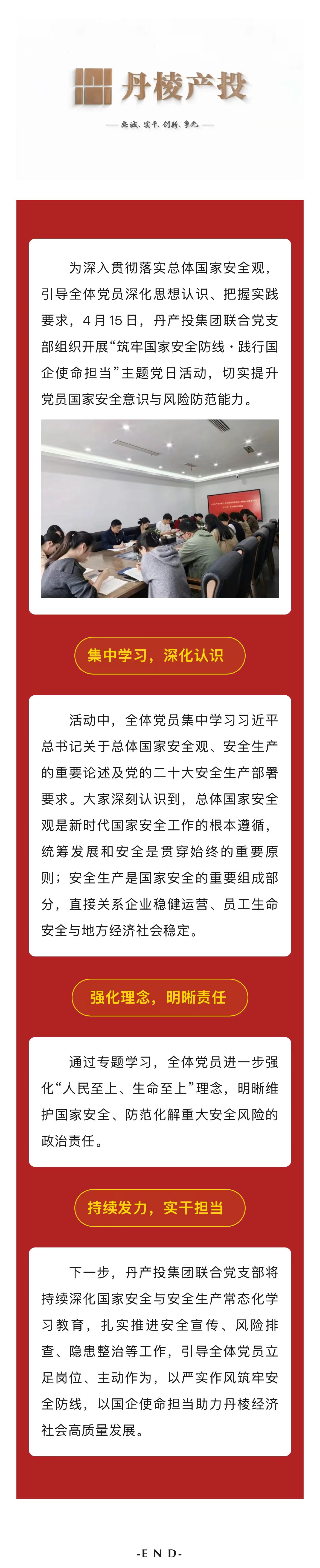 筑牢国家安全防线 践行国企使命担当——丹产投集团联合党支部4月主题党日活动